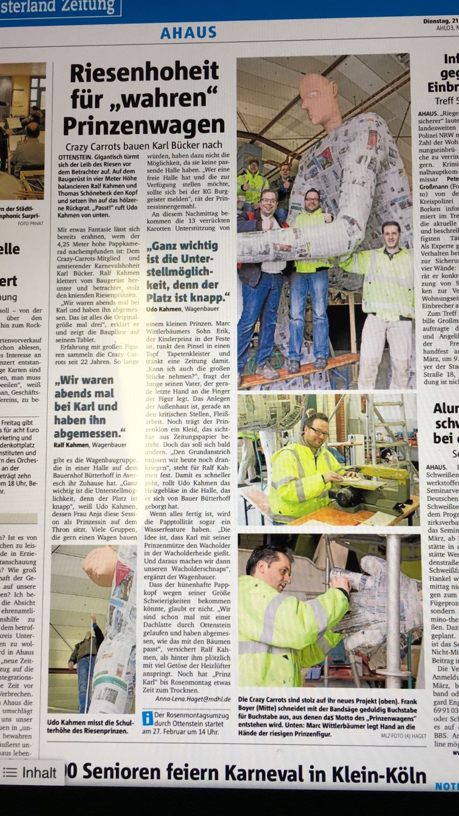 den der Kegelclub "Crazy Carrots" geschaffen und auf einem Anhänger installiert hat: Die Hauptfigur des